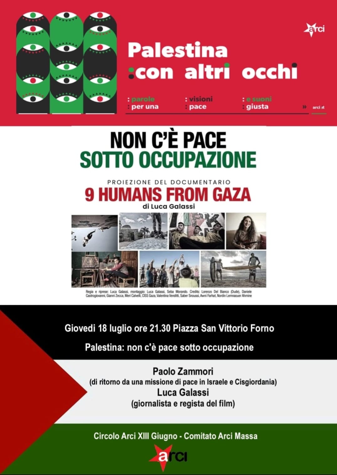 Nuovo appuntamento della campagna Arci Con Altri Occhi PALESTINA: RACCONTO DI UNA MISSIONE DI PACE ePROİEZİONE DI 9 HUMANS FROM GAZA di Luca Galassi Giovedi 18 luglio ore 21:30Forno – piazza … Leggi tutto